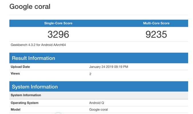 नई दिल्ली (टेक डेस्क)। स्मार्टफोन के लिए एंड्रॉइड ऑपरेटिंग सिस्टम बनाने वाली कंपनी और दुनिया का सबसे बड़ा सर्च इंजन Google अपना अगला स्मार्टफोन Google Coral जल्द लॉन्च कर सकता है। इस स्मार्टफोन में गूगल लेटेस्ट ऑपरेटिंग सिस्टम Android Q और Snapdragon 855 चिपसेट प्रोसेसर दे सकता है। हाल ही में इस स्मार्टफोन को ग्रीनवीच बेंचमार्क डाटाबेस में इस स्मार्टफोन को स्पॉट किया गया है। लीक हुई जानकारी के मुताबिक इस स्मार्टफोन को गूगल पिक्सल के अगले सीरीज के तौर पर लॉन्च किया जा सकता है। आइए, जानते हैं इस स्मार्टफोन के संभावित फीचर्स के बारे में