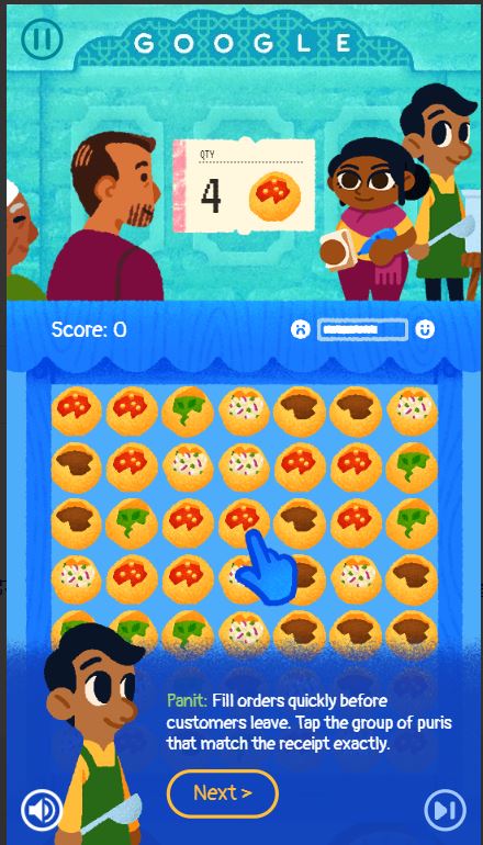 गूगल डूडल पर पानी पुरी गेम कैसे खेलें