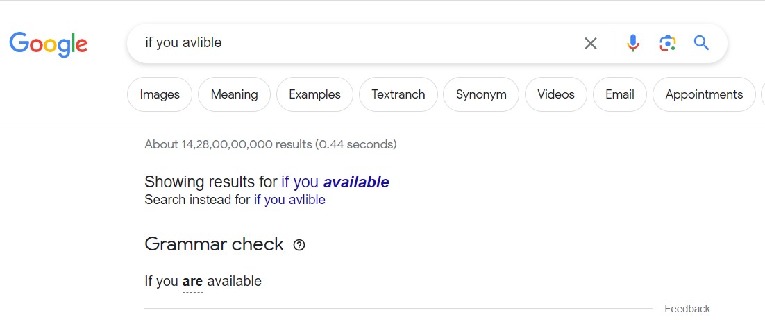 जैसा कि आप ऊपर स्क्रीनशॉट में देख सकते हैं, Google ने अपने सर्च इंजन में एक नया AI बेस्ड ग्रामर चेकर टूल जोड़ा है। कंपनी के मुताबिक, यदि टाइप किया गया वाक्य या वाक्यांश व्याकरण रूप से गलत है तो ग्रामर चेकर टूल विश्लेषण करेगा और सही वाक्य दिखाएगा।