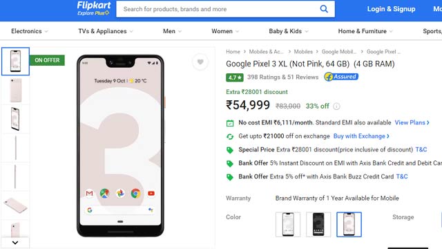 ₹83,000 के Pixel 3 XL को ₹34,000 से कम कीमत में खरीदने का मौका