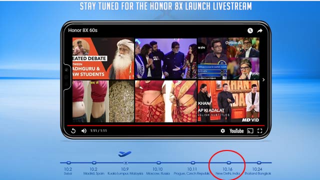Honor 8X को बड़े डिस्प्ले और ड्यूल रियर कैमरा के साथ 16 अक्टूबर को भारत में होगा लॉन्च