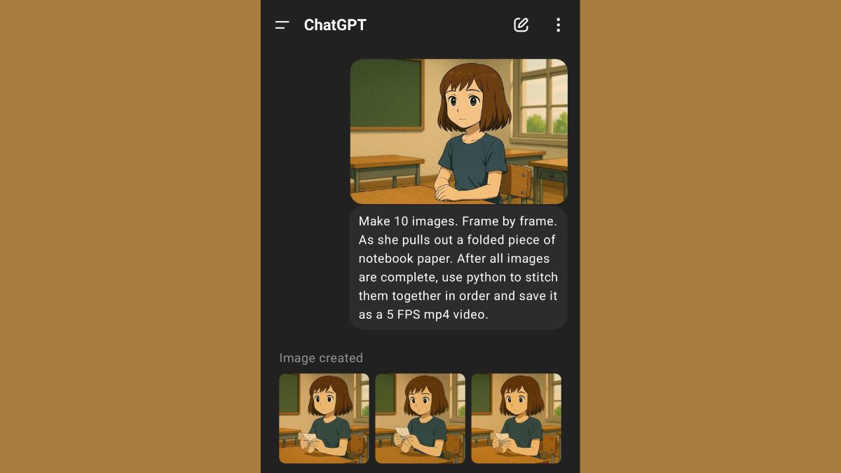 बता दें कि OpenAI का टेक्स्ट-टू-इमेज मॉडल अब फ्री में यूजर्स को Studio Ghibli AI-जनरेटेड फोटो बनाने की सुविधा दे रहा है। हालांकि एक रेड्डिट यूजर ने एक तरकीब शेयर की है जिससे आप फोटो से वीडियो बना सकते हैं। दरअसल आप ChatGPT को फ्रेम-बाय-फ्रेम पहले 10 तस्वीरें बनाने के लिए कह सकते हैं और फिर पाइथन का यूज करके उन्हें 5 FPS के एक शॉर्ट वीडियो में बदलने के लिए कह सकते हैं। यह तरीका उन यूजर्स के लिए एक सस्ता ऑप्शन बन गया है, जिनके पास OpenAI के प्रीमियम वीडियो जनरेटर Sora का एक्सेस नहीं है।