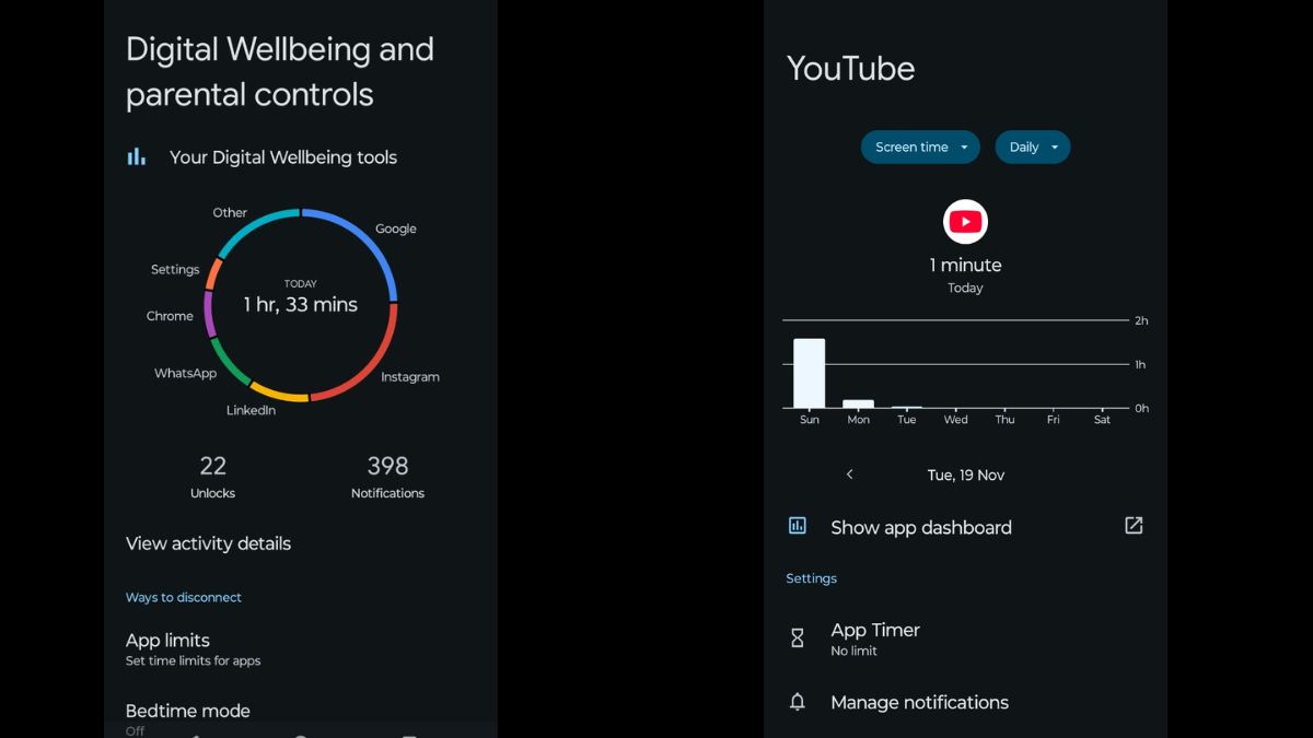 यहां बेड टाइम और फोकस मोड जैसे फीचर भी मिलते हैं। साथ ही 'स्क्रीन टाइम रिमाइंडर फीचर' भी मिलता है। जिसे आप ऑन कर सकते हैं। जिन्हें इनेबल करके आप घंटों-घंटों फोन चलाने की आदत से काफी हद तक छुटकारा पा सकते हैं।