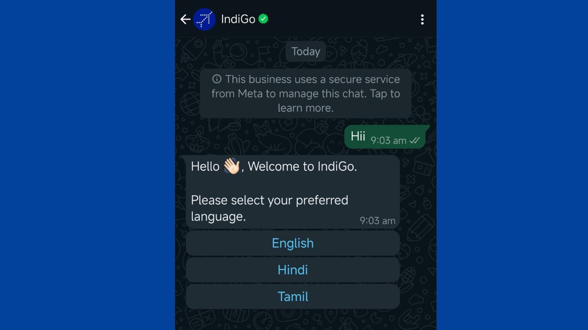 इंडिगो की इस सर्विस का इस्तेमाल करने के लिए ग्राहकों को अपने फोन पर एक वॉट्सऐप नंबर +91 7065145858 सेव करना होगा। जैसे ही इस नंबर को सेव किया जाएगा, नंबर पर चैट शुरू की जा सकेगी।