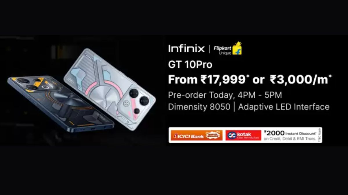 इनफिनिक्स का कम बजट में यह गेमिंग डिवाइस फ्लिपकार्ट पर प्री-ऑर्डर के लिए उपलब्ध होगा। हालांकि, आज यानी 8 अगस्त को Infinix GT 10 Pro की फ्लैश सेल होने जा रही है। फ्लैश सेल में बंपर डिस्काउंट के साथ आप भी स्मार्टफोन की खरीदारी कर सकते हैं।