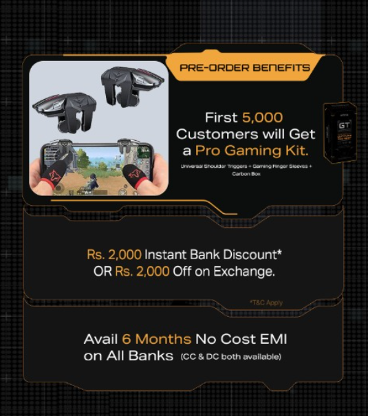 कंपनी ने जीटी 10 प्रो की पैकेजिंग को खास रखा है, जिससे इस डिवाइस के बॉक्स को फिर उपयोग किया जा सकता है। Infinix जीटी 10 प्रो को प्री-बुक करने वाले पहले 5,000 ग्राहकों को एक विशेष प्रो गेमिंग किट मिलेगी, जो स्मार्टफोन के गेमिंग-सेंट्रिक स्पेसिफिकेशंस को बेहतर बनाएंगे। इसके अलावा कंपनी कई ऐसे ऑफर्स और डिस्काउंट देगी, जिसका इस्तेमाल कस्टमर्स फोन खरीदते समय कर सकते हैं।