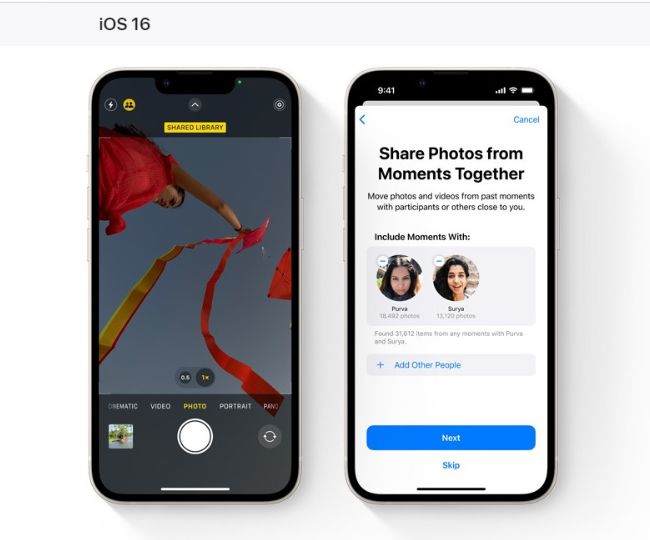 - icloud- इस बार icloud Shared Photo Library का नया फीचर आया है। यह एक नई तरह की icloud लाइब्रेरी है जिसे अधिकतम छह लोगों के साथ साझा किया जा सकता है। अन्य फीचर्स में शामिल हैं - स्मार्ट अपलोड फिल्टर जो कि कैमरे ऐप में एक नया बटन है जिससे तुरंत shared लाइब्रेरी में तस्वीरें भेजी जा सकती हैं।