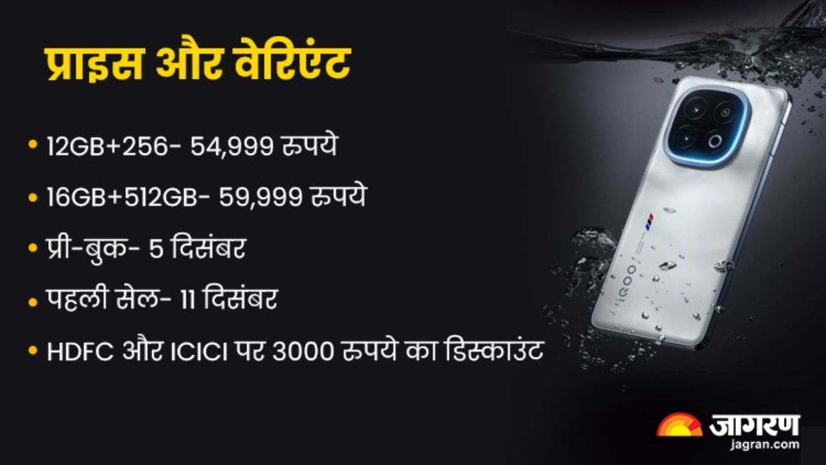 iQOO 13 दो वेरिएंट में लॉन्च हुआ है, जो कि 12GB+256GB और 16GB+512GB है। स्टैंडर्ड वेरिएंट की कीमत 54,999 रुपये से शुरू होती है, लेकिन लॉन्च ऑफर के साथ यह 51,999 रुपये में उपलब्ध होगा। वहीं टॉप वेरिएंट 59,999 रुपये में आया है, लेकिन ऑफर के बाद प्रभावी कीमत 56,999 रुपये हो जाएगी।