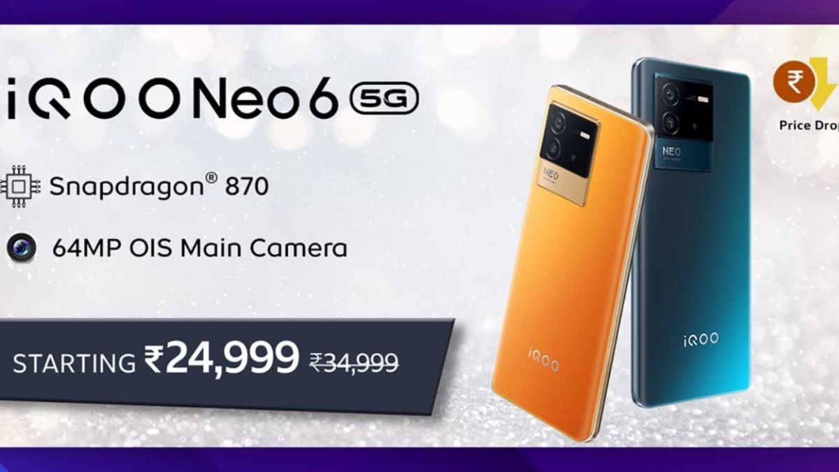 हम ऐसा इसलिए कह रहे हैं कि iQOO ने भारत में पिछले साल लॉन्च हुए अपने iQOO Neo 6 स्मार्टफोन की कीमत घटा दी है। बता दें कि स्मार्टफोन दो वेरिएंट में आता है और दोनों की कीमत में 5,000 रुपये की कटौती की गई है।