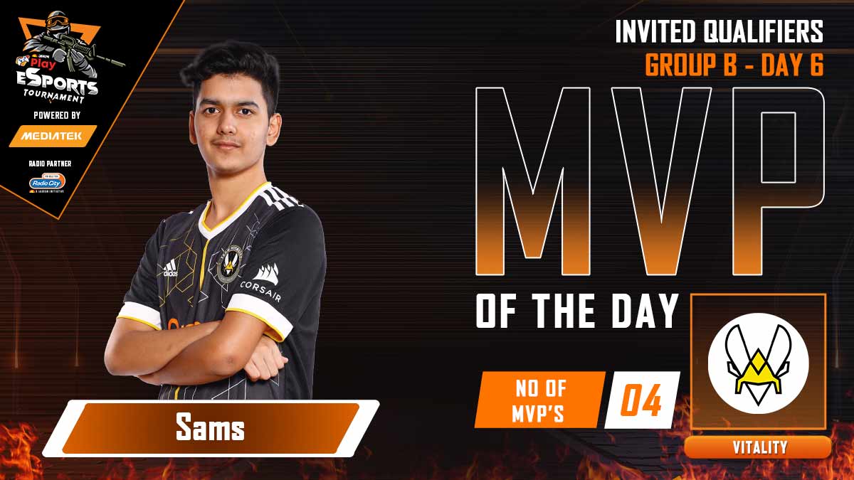 Call of Duty Mobile Esports Tournament 2022 में नंबर ऑफ 4 MVP के साथ Vitality के खिलाड़ी Sams ने MVP ऑफ दी डे का खिताब जीता। इन्होंने बहुत ही अच्छा प्रदर्शन किया। इस टूर्नामेंट के कास्टर्स AURO GAMING और MONISH NAIK हैं। इस टूर्नामेंट का पावर्ड बाय स्पॉन्सर MediaTek हैं और रेडियो पार्टनर Radio City है।