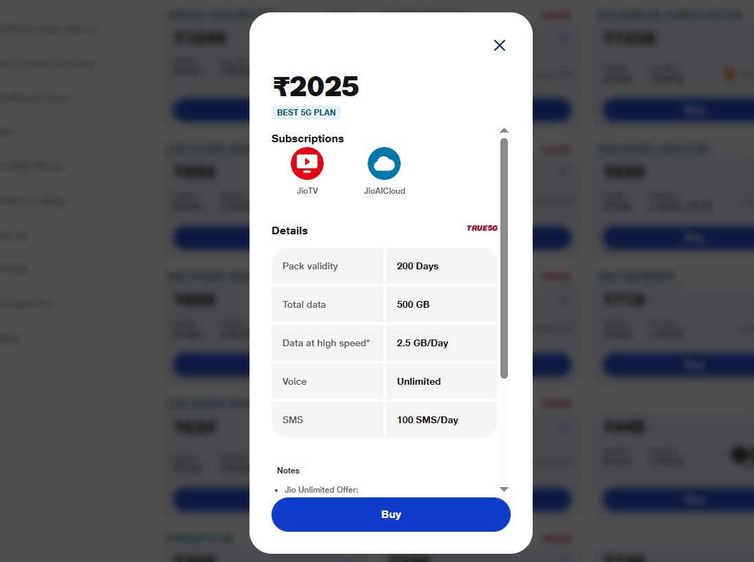 सबसे पहले अगर हम जियो के इस खास प्लान की बात करें तो यह 2025 रुपये का है। इस प्लान में आपको रोजाना 2.5 जीबी हाई स्पीड इंटरनेट मिलेगा। यह प्लान अनलिमिटेड 5जी भी ऑफर कर रहा है, यानी अगर आप ऐसे इलाके में रहते हैं जहां 5जी नेटवर्क है तो आप इस प्लान के साथ अनलिमिटेड डेटा का मजा ले सकते हैं। वहीं, 4G पर आपको रोजाना 2.5 जीबी डेटा मिलेगा।
