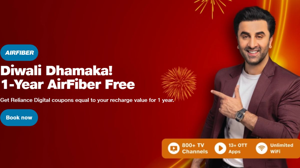 ध्यान रखें इस ऑफर का लाभ लेने के लिए आपको जल्दी करनी होगी, क्योंकि इसका लाभ सिर्फ 3 नवंबर तक ही लिया जा सकता है। जियो एयर फाइबर प्लान पर भी एक स्पेशल डील ऑफर कर रहा है। दीवाली धमाका ऑफर के तहत ग्राहकों 2,222 रुपये में 3 महीने के लिए जियो एयर फाइबर सर्विस मिलेगी।