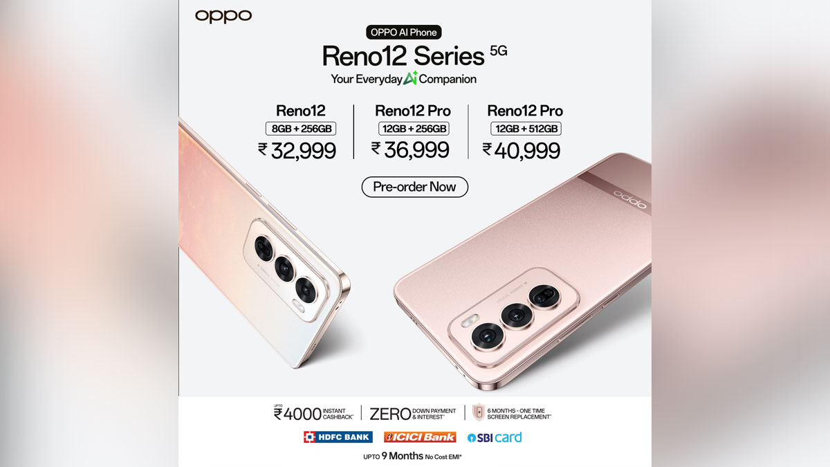 - जो ग्राहक अपने Reno12 Pro 5G को 18 जुलाई की आधी रात से पहले और Reno12 5G को 25 जुलाई की आधी रात से पहले प्री-बुक करते हैं, उन्हें 6 महीने की विशेष वन-टाइम-स्क्रीन रिप्लेसमेंट (OTSR) सेवा प्राप्त होगी।