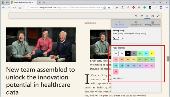 विंडोज 10 इनसाइडर प्रीव्यू बिल्ड 17711 का हिस्सा होने की वजह से रीडिंग व्यू पर उपलब्ध लर्निंग टूल्स को माइक्रोसॉफ्ट एज ने इम्प्रूव किया है। लेटेस्ट बिल्ड के जरिये एज यूजर्स न सिर्फ नए थीम को सेलेक्ट कर सकते हैं, बल्कि कई तरह के थीम कलर्स को भी चुन सकते हैं।