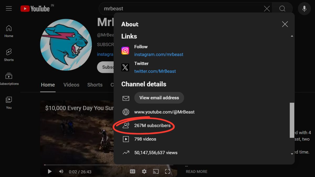 MrBeast के लेटेस्ट वीडियो को व्यूज