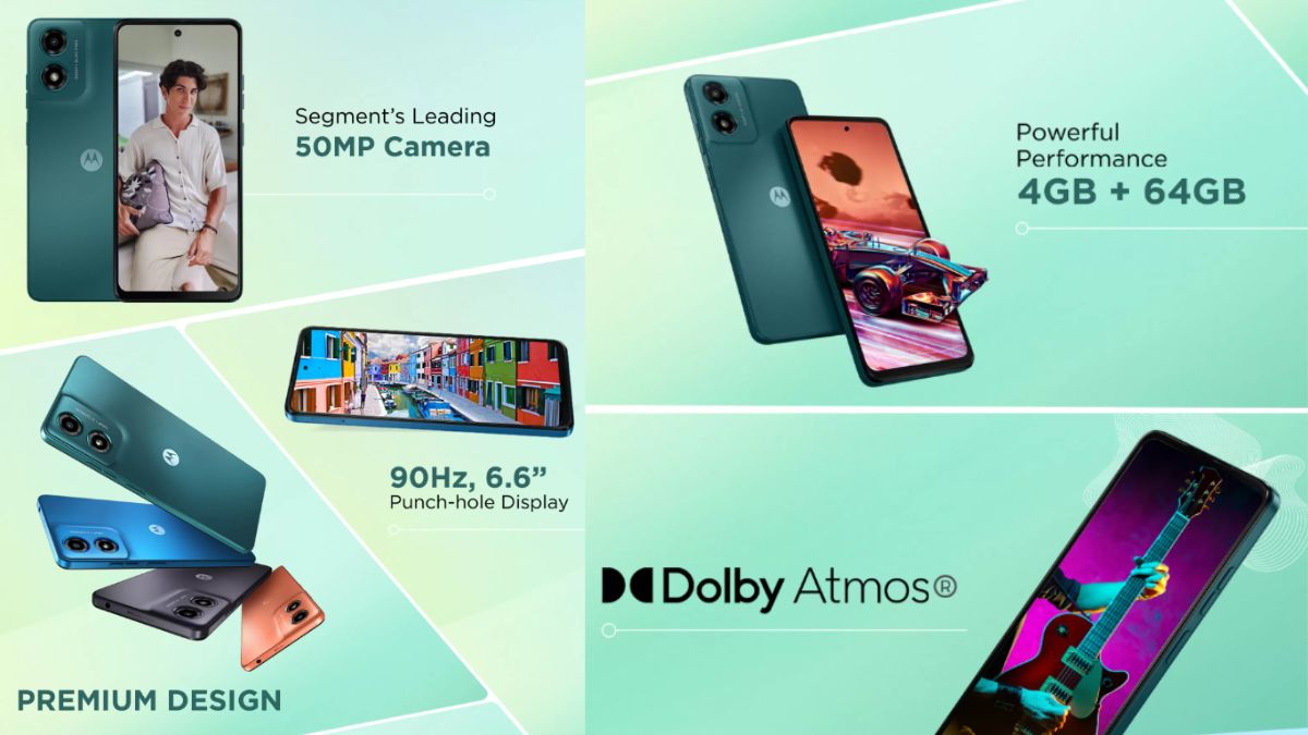 मोटोरोला का नया फोन एक प्रीमियम डिजाइन के साथ चार अलग-अलग कलर ऑप्शन में लाया जा रहा है। फोन Dolby Atmos और लेटेस्ट एंड्रॉइड 14 ओएस के साथ लाया जा रहा है।