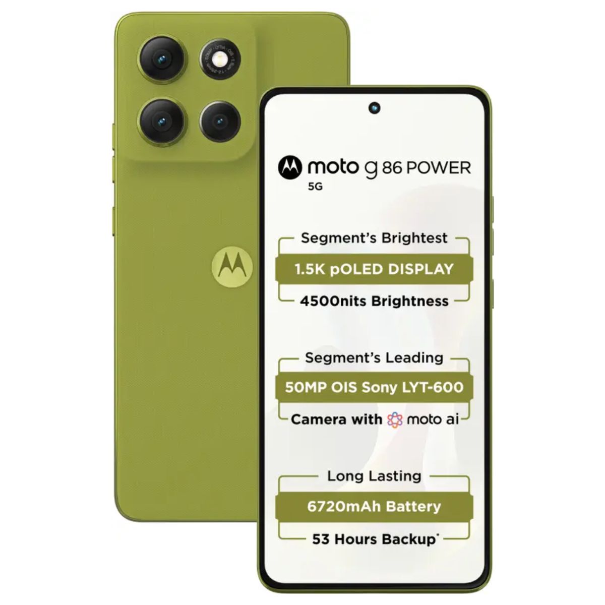 Moto G86 Power 5G में 120Hz रिफ्रेश रेट वाला 6.67‑इंच का 1.5K pOLED डिस्प्ले दिया गया है। यह HDR10+ सपोर्ट करता है। इस डिस्प्ले की टॉप ब्राइटनेस 4,500 निट्स पीक ब्राइटनेस है और यह Gorilla Glass 7i प्रोटेक्शन के साथ आता है।