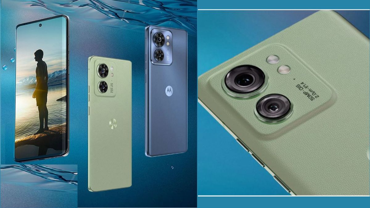 motorola edge 40 यूजर्स के लिए तीन कलर ऑप्शन Nebula Green, Eclipse Black, और Lunar Blue में लाया जा रहा है। फोन को मेटल फ्रेम और लेदर बैक पैनल के साथ लाया जा रहा है। भारतीय बाजारों के लिए कंपनी का नया स्मार्टफोन IP68 rating के साथ लाया जा रहा है।