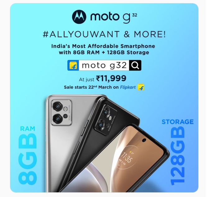 दरअसल मोटोरोला ने भारत में अपने Moto G32 स्मार्टफोन के 4GB RAM और 64GB इंटरनल स्टोरेज वेरिएंट को बीते साल अगस्त में लॉन्च किया था।