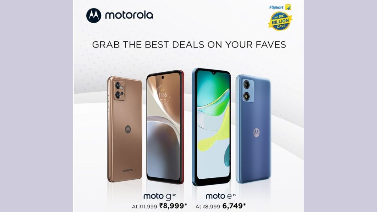 These are no ordinary deals; they're steals of a lifetime! The budget-friendly #MotoE13 and the beloved #MotoG32 smartphones can now be yours at special festive prices, starting from just ₹6,749*. Don't miss out on your favorites at @Flipkart's #BigBillionDays Sale