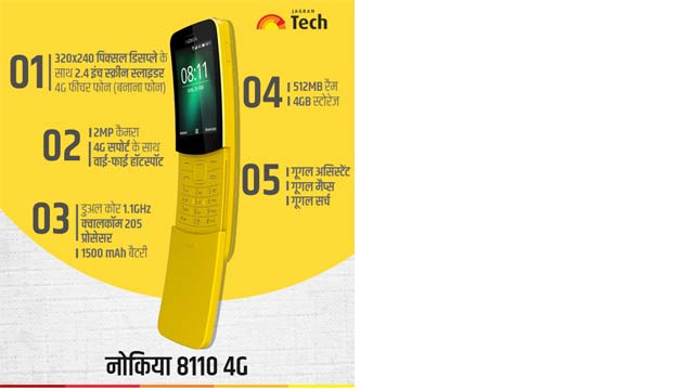 Nokia 8810 4G को पहले के मुकाबले हल्का बनाया गया है। Banana फोन का डिजाइन पूरी तरह से बदल दिया गया है। इस फोन में कंपनी ने स्लाइडर भी एड कर दिया है। इस फोन येलो और ब्लैक कलर में ही खरीदा जा सकेगा। इसे KaiOS के साथ पेश किया गया है। यह फोन 4 जीबी स्टोरेज के साथ आता है। इसमें 2.4 इंच के डिस्प्ले के साथ आते हैं जिसका पिक्सल रेजोल्यूशन 240 x 320 है। साथ ही 2 मेगापिक्सल का बैक कैमरा दिया गया है। हालांकि, यह कैमरा केवल बेसिक फोटोग्राफी के लिए ही काम आएगा। Nokia 8110 4G में 1500 एमएएच की बैटरी दी गई है जो 25 दिन का स्टैंडबाय टाइम और 10 घंटे का टॉकटाइम देने में सक्षम है।