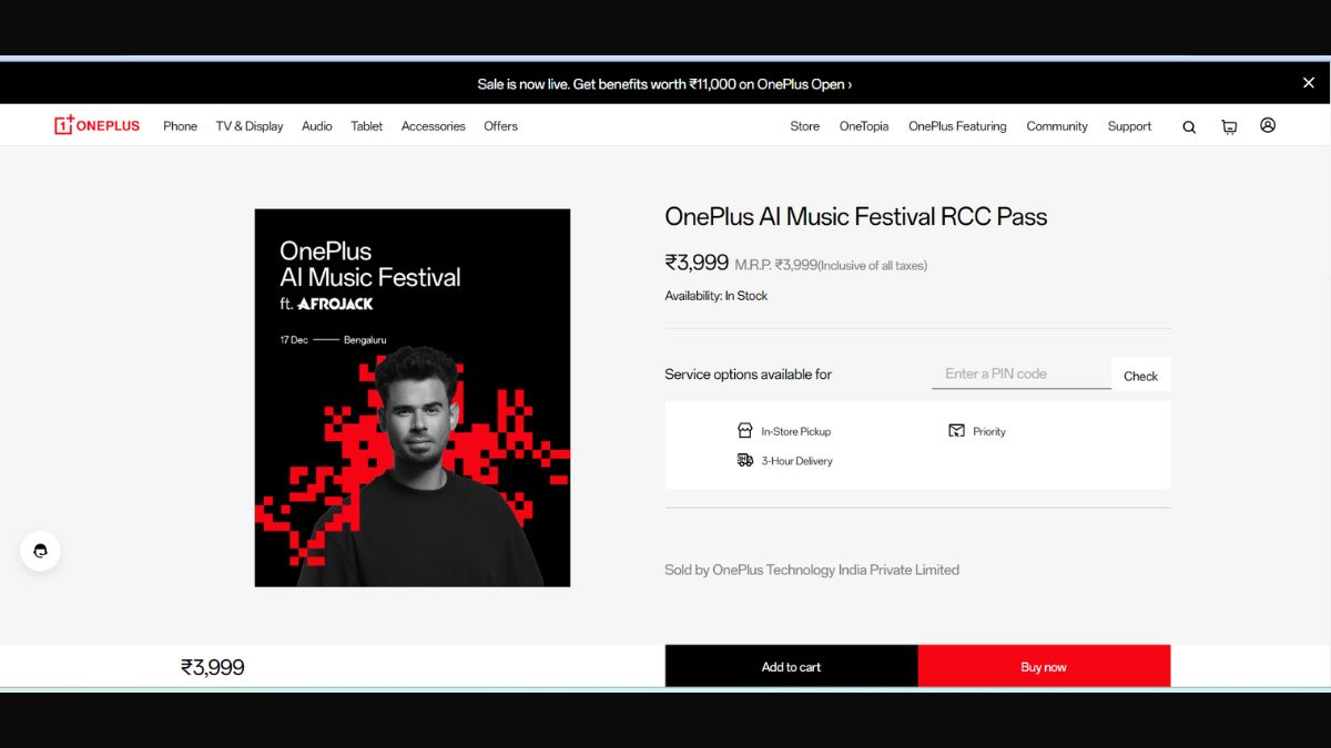कंपनी के इस इवेंट (OnePlus AI Music Festival) के टिकट की कीमत 699 रुपये रखी गई है। इस टिकट के साथ कंपनी के इस इवेंट का हिस्सा बना जा सकेगा। इस टिकट को पेटीएम इनसाइडर से पाया जा सकता है।