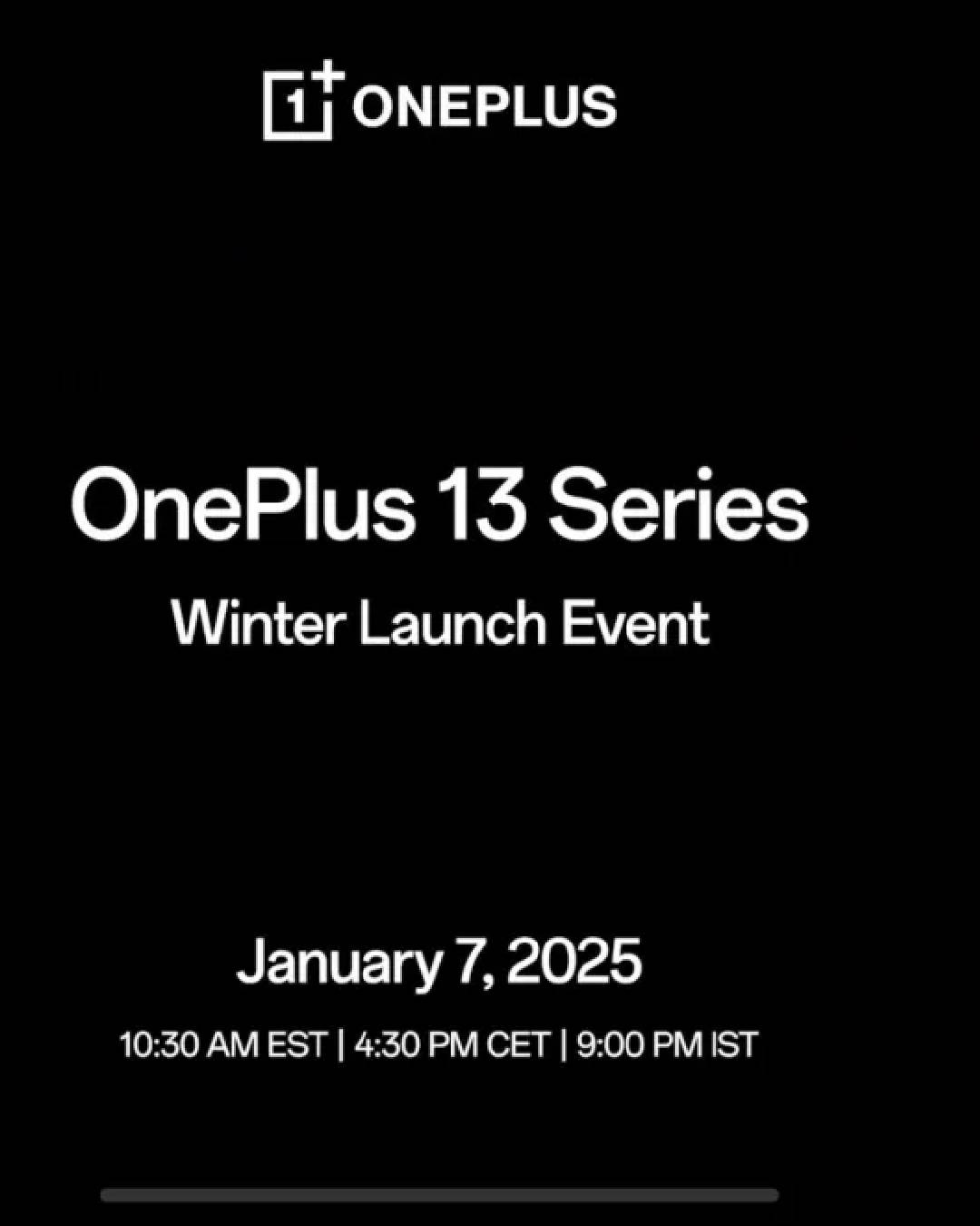 OnePlus Winter Launch Event वनप्लस अगले महीने अपनी OnePlus 13 सीरीज को लॉन्च करने की तैयारी कर रहा है। स्मार्टफोन के साथ कंपनी के पोर्टफोलियो में नए ईयरबड्स और स्मार्ट वॉच भी शामिल हो सकती है। अपकमिंग इवेंट 7 जनवरी को आयोजित किया जाएगा। इसे भारतीय यूजर्स रात 9 बजे से वनप्लस इंडिया के यूट्यूब चैनल पर लाइव देख पाएंगे।