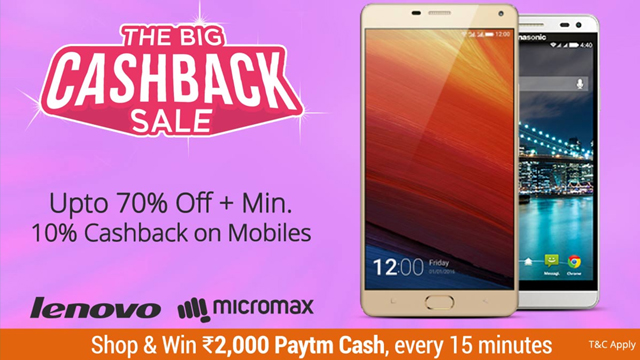 ई-कॉमर्स कंपनी Paytm यूजर्स के लिए शानदार ऑफर्स लेकर आई है। Paytm ने बिग कैशबैक सेल आयोजित की है, जिसमें कई प्रोडक्ट्स पर शानदार ऑफर दिया जा रहा है