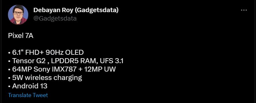 Pixel 7a की संभावित स्पेसिफिकेशन्स