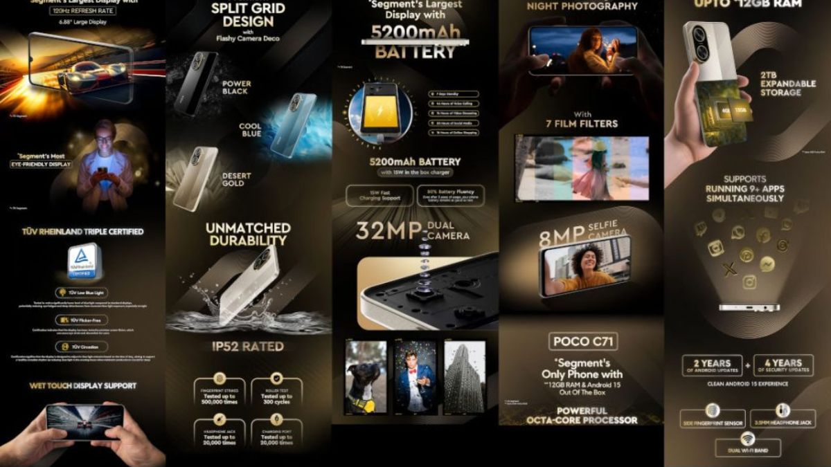 इसके अलावा, पोको C71 में 12GB रैम देखने को मिलेगी जो कंपनी ने फिर से दावा किया है कि यह सेगमेंट में पहली बार है। स्मार्टफोन Android 15 आउट-ऑफ-द-बॉक्स ऑफर करेगा जिसमें 2 साल के Android अपडेट और 4 साल के सिक्योरिटी अपडेट मिलेंगे। कनेक्टिविटी के लिए फोन में साइड-माउंटेड फिंगरप्रिंट सेंसर, 3.5mm हेडफोन जैक और डुअल वाई-फाई बैंड जैसे फीचर्स भी होंगे।