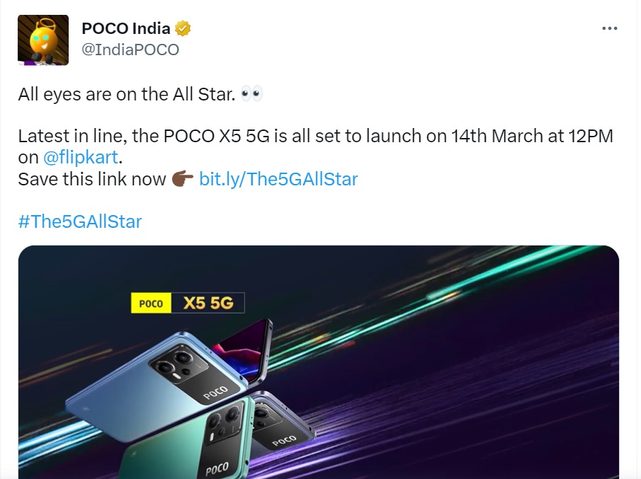 नई दिल्ली, टेक डेस्क. भारतीय बाजार में पिछले महीने POCO X5 Pro 5G लॉन्च करने के बाद, POCO India अब देश में वैनिला POCO X5 5G लॉन्च करने के लिए पूरी तरह तैयार है। आधिकारिक घोषणा के अनुसार, POCO X5 5G भारतीय बाजार में 14 मार्च को लॉन्च होगा। कंपनी POCO X5 5G इंडिया लॉन्च की तारीख की घोषणा अपने सोशल मीडिया चैनल पर की है।