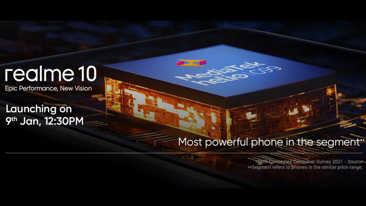 Realme ने हाल ही में अपने Realme 10 सीरीज के दो स्मार्टफोन को भारत में लॉन्च कर चुकी है। अब कंपनी इस सीरीज के 4G फोन Realme 10 4G को लॉन्च करने जा रहा है। यह स्मार्टफोन 9 जनवरी को लॉन्च करेगी।