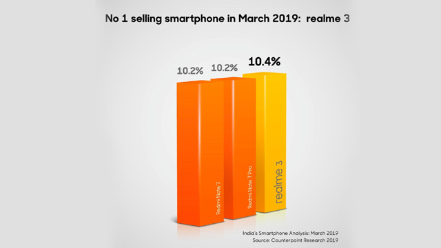 नई दिल्ली (टेक डेस्क)। Realme 3 ने Redmi Note 7 Pro और Redmi Note 7 को पीछे छोड़ते हुए सबसे ज्यादा ऑनलाइन बिकने वाला स्मार्टफोन बन गया है। Counterpoint रिसर्च के डाटा के मुताबिक यह अब तक का सबसे ज्यादा पसंद किया जाने वाला Realme स्मार्टफोन भी बन गया है। Counterpoint एनलिस्ट द्वारा जारी मार्च 2019 के आंकड़ों के मुताबिक, Realme 3 ऑनलाइन चैनल्स के माध्यम से सबसे ज्यादा बिकने वाला स्मार्टफोन बन गया है।