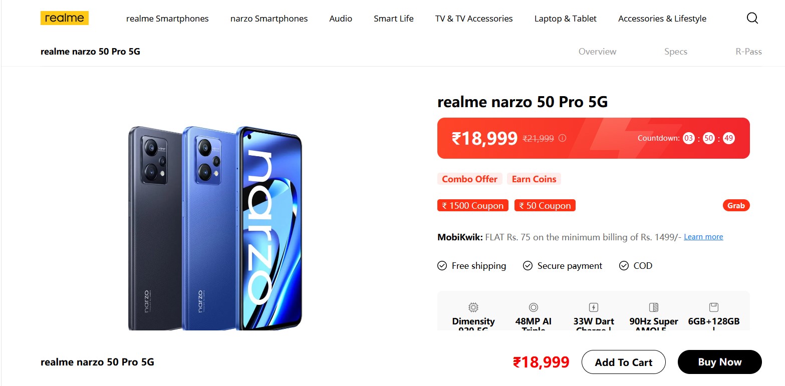 Realme Narzo 50 Pro 5G पर डिस्काउंट