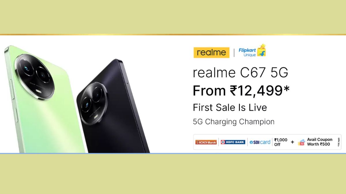 realme C67 5G स्मार्टफोन की सेल दोपहर 12 बजे से लाइव हो चुकी है। फोन की खरीदारी फ्लिपकार्ट और रियलमी की ऑफिशियल वेबसाइट से की जा सकती है।