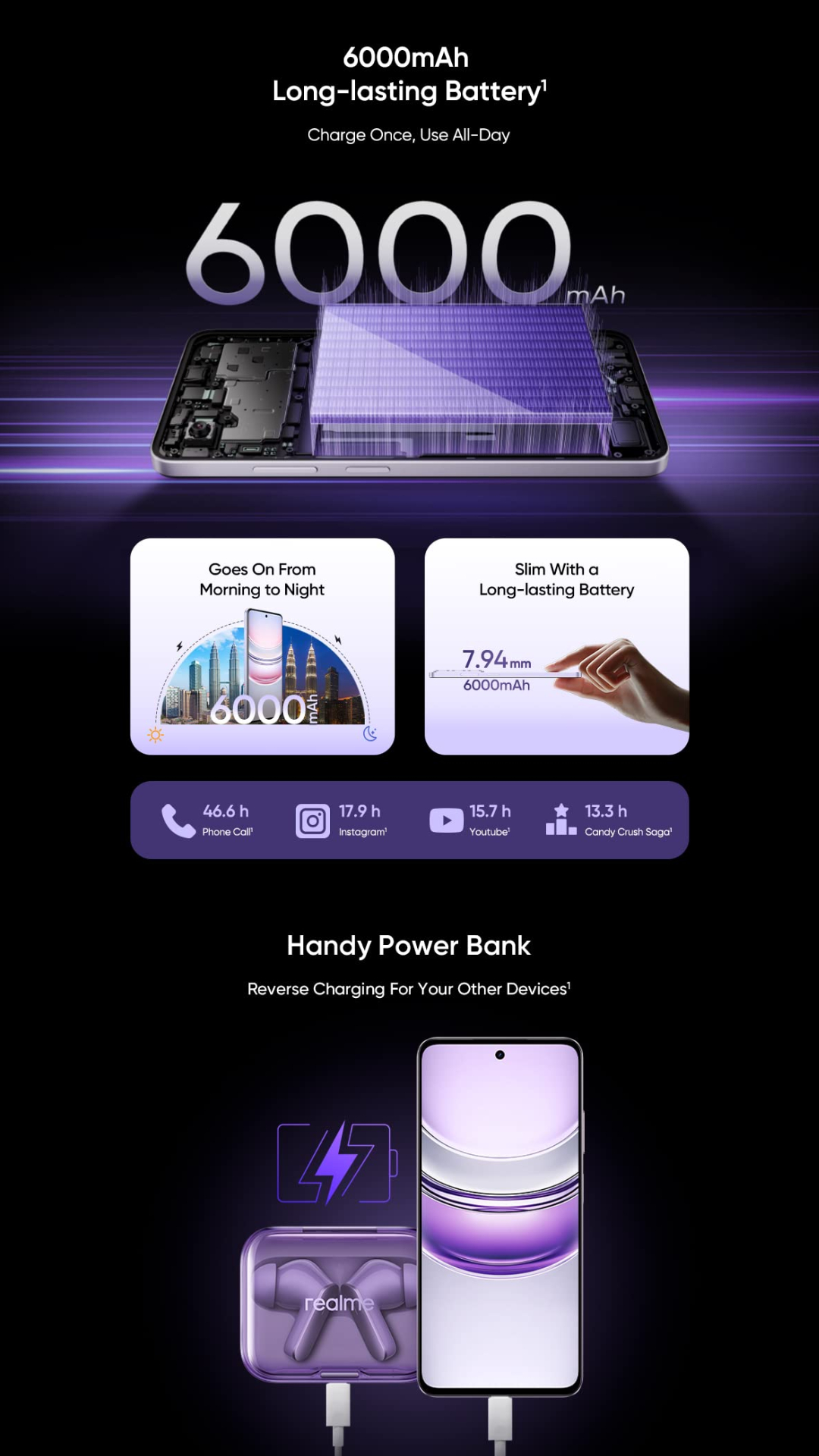 इससे पहले कंपनी ने Realme Narzo 80 Pro और Narzo 80x स्मार्टफोन में भी 6,000mAh बैटरी दी थी। इसके साथ ही Realme Narzo 80 Lite स्मार्टफोन में कंपनी रिवर्स चार्जिंग सपोर्ट दे सकती है।