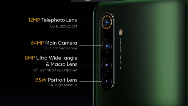 Realme X सीरीज के पिछले स्मार्टफोन्स की तरह ही इसमें भी कंपनी ने 64MP क्वाड रियर कैमरा सेटअप का इस्तेमाल किया है। फोन में 64MP के मेन कैमरे के अलावा 12MP का टेलिफोटो सेंसर, 8MP का अल्ट्रा वाइड सेंसर और 2MP का B&W सेंसर दिया गया है।