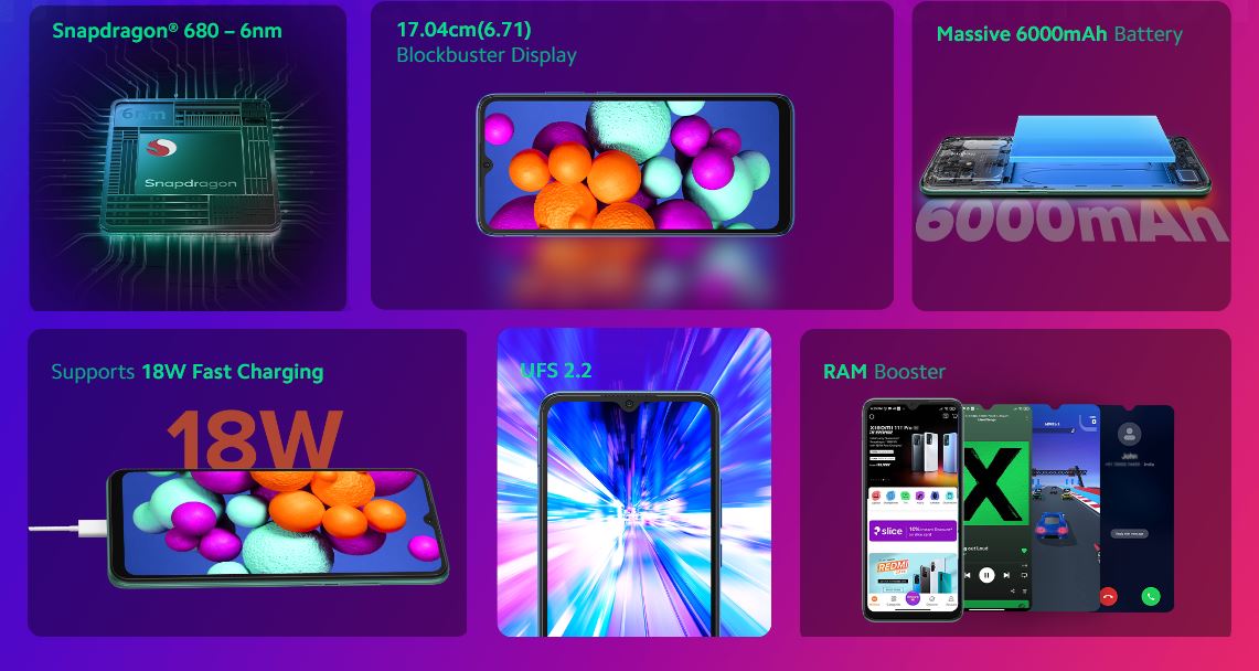 इस फोन में सेल्फी के लिए 5MP का फ्रंट कैमरा भी मिलता है।इस फोन की सबसे खास बात इसकी बड़ी बैटरी है, फोन में आपको 18W फास्ट चार्जिंग सपोर्ट के साथ 6000mAh की बैटरी भी दी गई है।