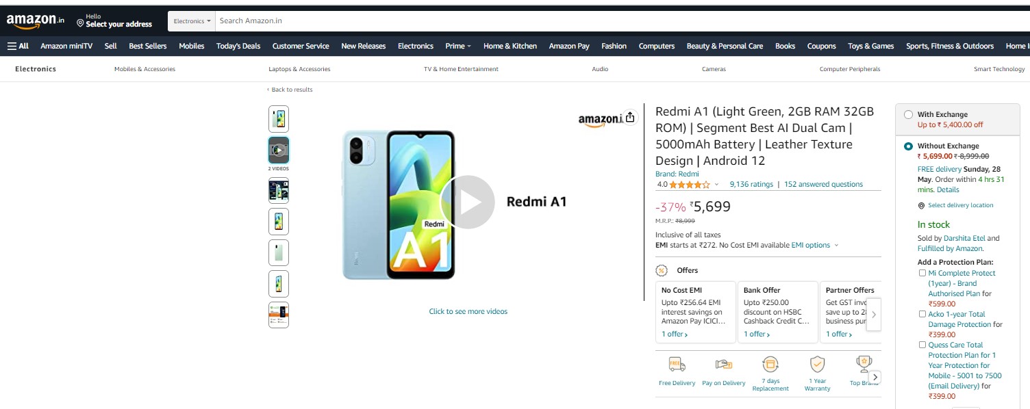 अमेजन पर Redmi A1 पर 37% का बंपर डिस्काउंट दिया जा रहा है। ऑफर के बाद फोन की कीमत केवल 5,699 रुपये है। यही नहीं, फोन की खरीदारी पर कुछ बैंक ऑफर्स भी मिल रहे हैं, जिनका फायदा उठाकर आप इस कीमत को और कम कर सकते हैं। अगर आपके पास HSBC Cashback Card Credit Card है तो आप 250 रुपये का इंस्टेंट डिस्काउंट पा सकते हैं।