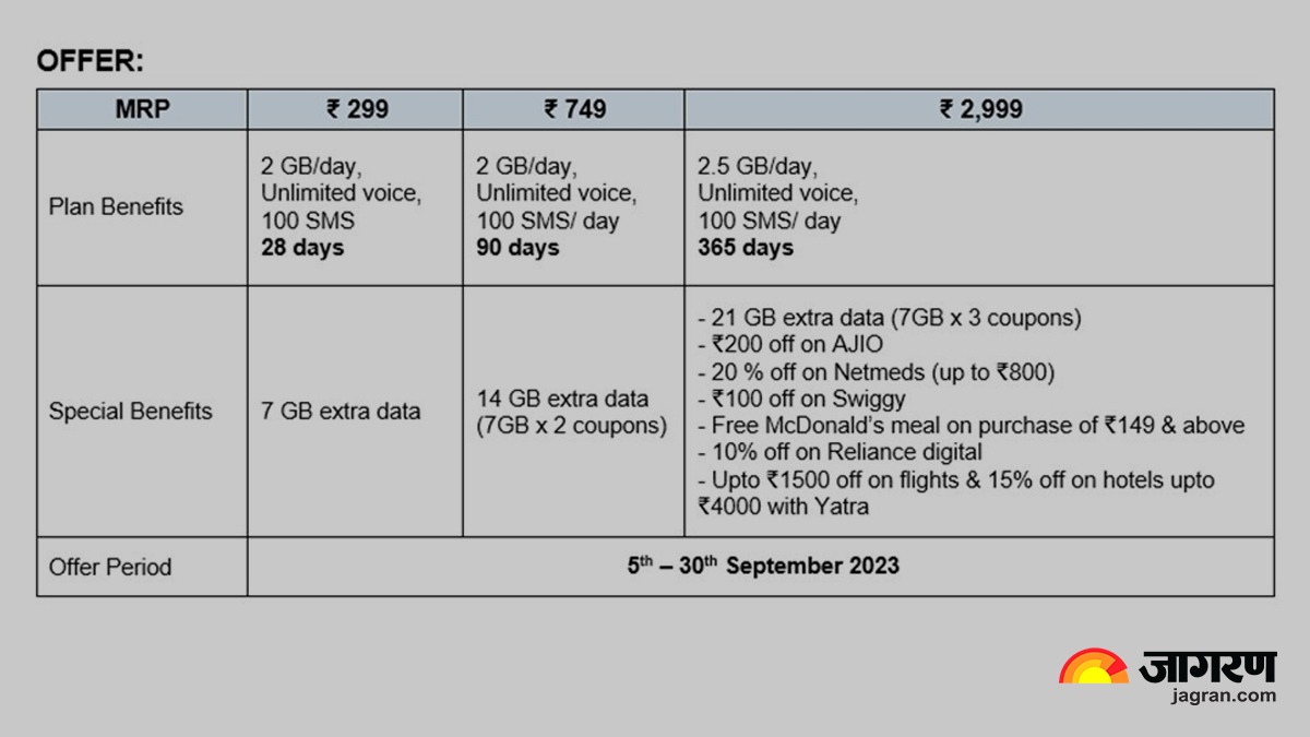 जियो ने इन सभी Jio प्रीपेड प्लान के ऑफर को पहले से ही कंपनी की ऑफिशियल वेबसाइट और ऐप पर लाइव हैं। जैसा कि हर बता चुके हैं कि यह सुविधा केवल सीमित समय तक के लिए है, यानी की कस्टमर्स केवल 30 सितंबर तक इसका लाभ उठा सकते हैं।