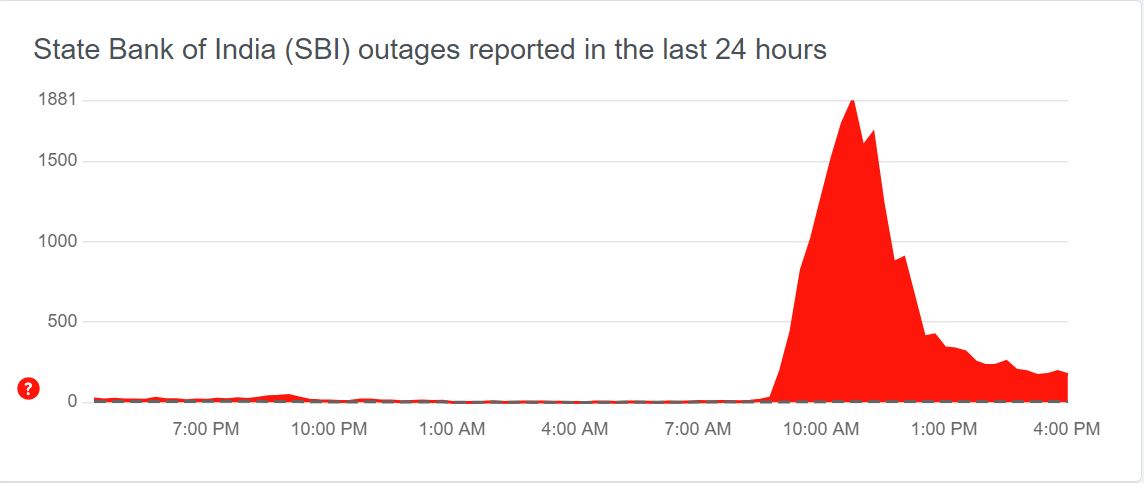 बता दें, बैंक का सर्वर अभी भी डाउन चल रहा है। हालांकि सुबह 11 बजे यह अपने पीक पर था। सुबह करीब 10 बजकर 46 के आसपास आउटेज का ग्राफ पीक पर नजर आया है।