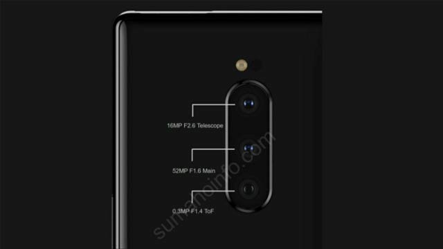 लीक के मुताबिक, इस फोन में ट्रिपल रियर कैमरा सेटअप दिया जाएगा। फोन का प्राइमरी कैमरा 52 मेगापिक्सल का होगा जिसका अपर्चर f/1.6 होगा। इसके अलावा फोन में 16 मेगापिक्सल का टेलिफोटो लेंस दिया जाएग जिसका अपर्चर f/2.6 होगा। इसके अलावा 0.3 मेगापिक्सल का ToF कैमरा भी दिया जाएगा। इसका अपर्चर f/1.4 होगा। ToF कैमरा को दूरी मांपने के लिए इस्तेमाल किया जा सकता है। साथ ही यह फोन के ऑगमेंटेड रिएलिटी फीचर्स में भी महत्वपूर्ण रोल निभाएगा। जहां प्राइमरी और सेकेंडरी कैमरा हाई-रेजोल्यूशन इमेजेज के लिए काम करेगा। वहीं, ToF सेंसर ऑटोफोकस और 3D स्कैनिंग के लिए काम करेगा।