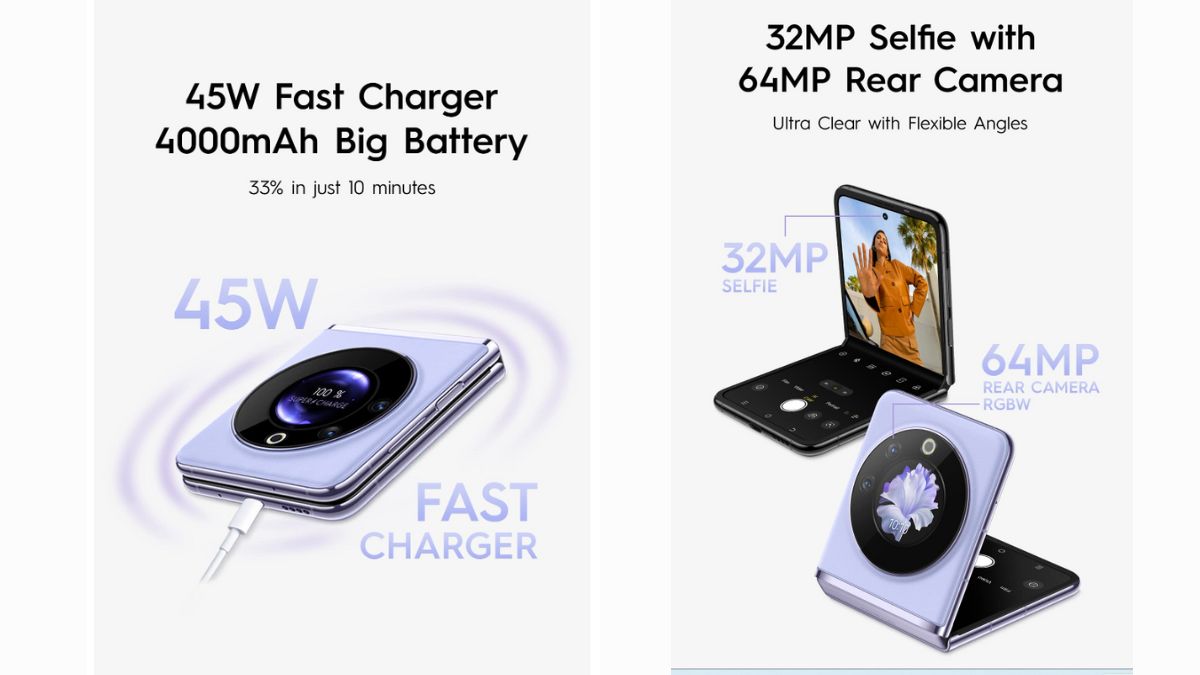 - बैटरी और चार्जिंग- TECNO Phantom V Flip स्मार्टफोन को 45W फास्ट चार्जिंग फीचर और 4000mAh बैटरी के साथ लाया जा रहा है। कंपनी का दावा है कि नया फोन मात्र 10 मिनट में 33 प्रतिशत तक चार्ज किया जा सकता है।
