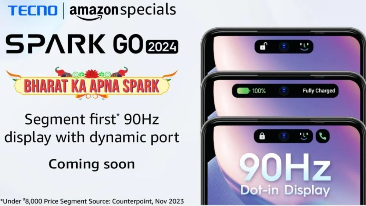 अमेजन इंडिया द्वारा शेयर किए गए टीजर के अनुसार, Tecno Spark Go 2024 जल्द ही भारत में लॉन्च होगा। पोस्टर में स्मार्टफोन के डिजाइन की झलक दिखाई गई है। Tecno Spark Go 2024 को 90Hz डिस्प्ले और डायनेमिक पोर्ट के साथ आने वाला सेगमेंट का पहला स्मार्टफोन बताया गया है।