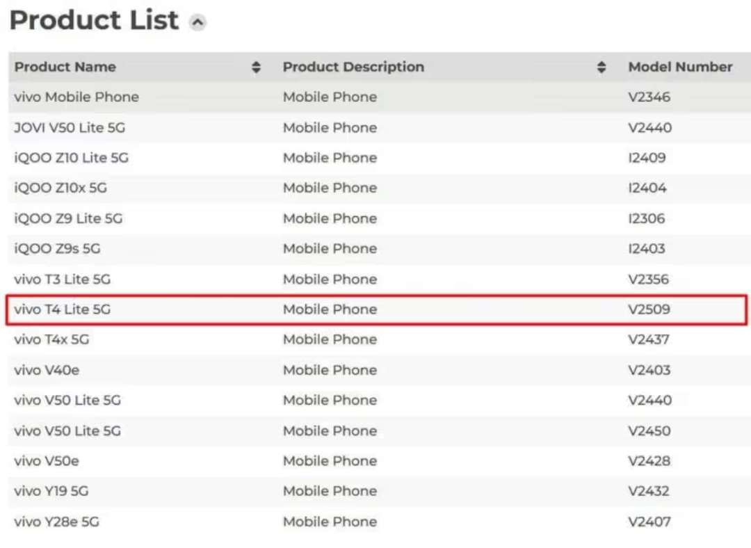 अपकमिंग Vivo T4 Lite स्मार्टफोन के बारे में बताया जा रहा है कि यह फोन कुछ दिनों पहले लॉन्च iQOO Z9 Lite 5G का रिब्रांड वर्जन होगा। वीवो भारत में इस फोन को जुलाई में लॉन्च कर सकता है। फिलहाल ये सिर्फ अटकलें हैं। Bluetooth SIG में इन स्मार्टफोन के नाम के अलावा ज्यादा कुछ भी जानकारी उपलब्ध नहीं है। हालांकि, Vivo V2504 (Vivo T4 Ultra ) स्मार्टफोन को पिछले महीने Geekbench प्लेटफॉर्म में स्पॉट किया गया था, जिसे उस वक्त Vivo V50 Pro समझा जा रहा था। अब ऐसा लग रहा है कि यह Vivo T4 Ultra होगा।