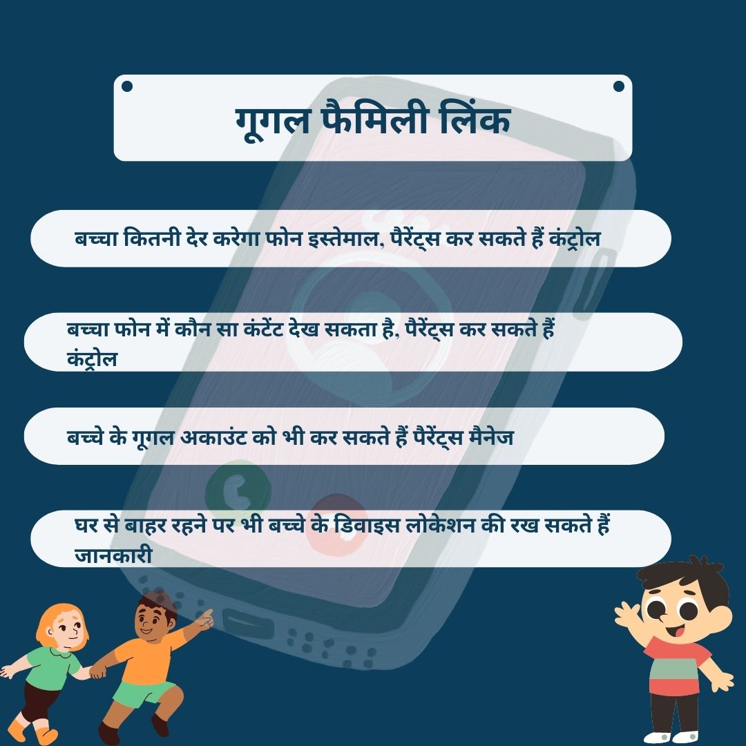 गूगल लिंक की मदद से यूजर बच्चे को डिवाइस देने के बाद घर के बाहर भी उससे जुड़ा रह सकता है। गूगल प्लेटफॉर्म यूजर को सुविधा देता है कि वह बच्चे के डिवाइस की लोकेशन जाने। इसी के साथ बच्चे के फोन में बैटरी स्टेटस को जानने में भी गूगल का यह प्लेटफॉर्म काम आता है।