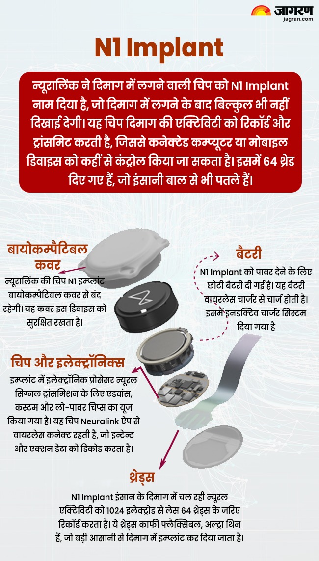 एलन मस्क ने कुछ इंजीनियर्स के साथ मिलकर 2016 में न्यूरालिंक की स्थापना की थी। उनकी कंपनी ब्रेन चिप इंटरफेस (BCI) बना रही है। इसे इंसान की खोपड़ी में इम्प्लांट किया जाएगा। कंपनी का दावा है कि इस चिप की मदद से लकवाग्रस्त या विकलांग मरीज एक बार फिर से चल और कम्युनिकेट कर पाएंगे। न्यूरालिंक की पहली चिप का नाम N1 Implant है।