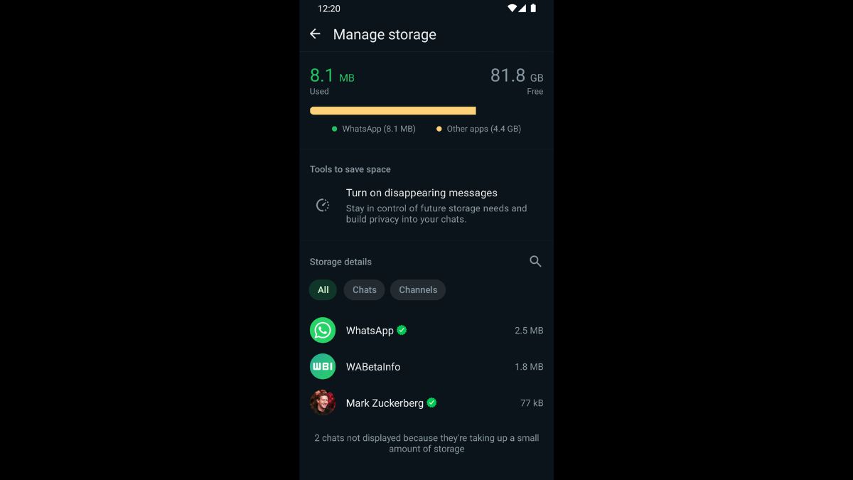 स्टोरेज मैनेज करने के लिए चैट फिल्टरिंग फीचर बीटा टेस्टर्स के लिए उपलब्ध करवा दिया गया है। इसे गूगल प्ले स्टोर से इंस्टॉल कर सकते हैं। हालांकि आने वाले कुछ दिनों में ये फीचर सभी यूजर्स के लिए रोलआउट हो सकता है।