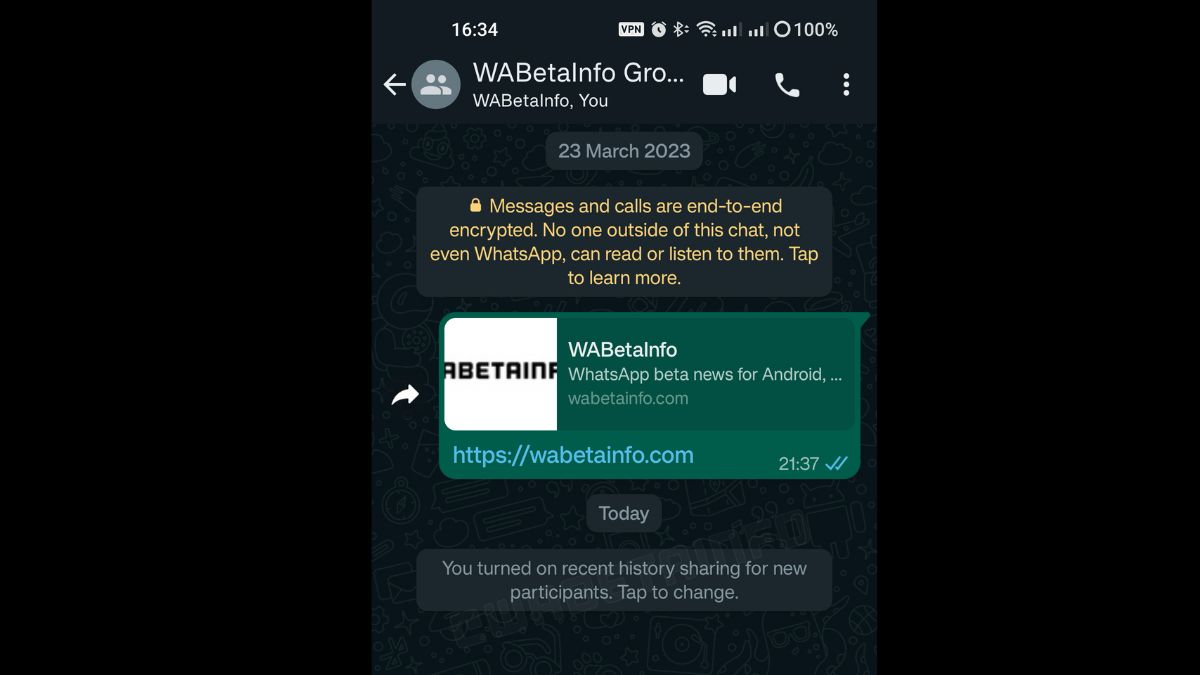 नया मेंमब ग्रुप की उन चैट्स को एक्सेस कर सकेगा, जो ग्रुप में उसके जुड़ने से पहली हुई हों। हालांकि, यूजर को नए फीचर के साथ केवल रिसेंट हिस्ट्री को ही एक्सेस करने का विकल्प मिलेगा। इसका मतलब होगा कि यूजर किसी ग्रुप का हिस्सा बनने के बाद पिछले 24 घंटों की ही ग्रुप चैट का एक्सेस कर सकेगा।