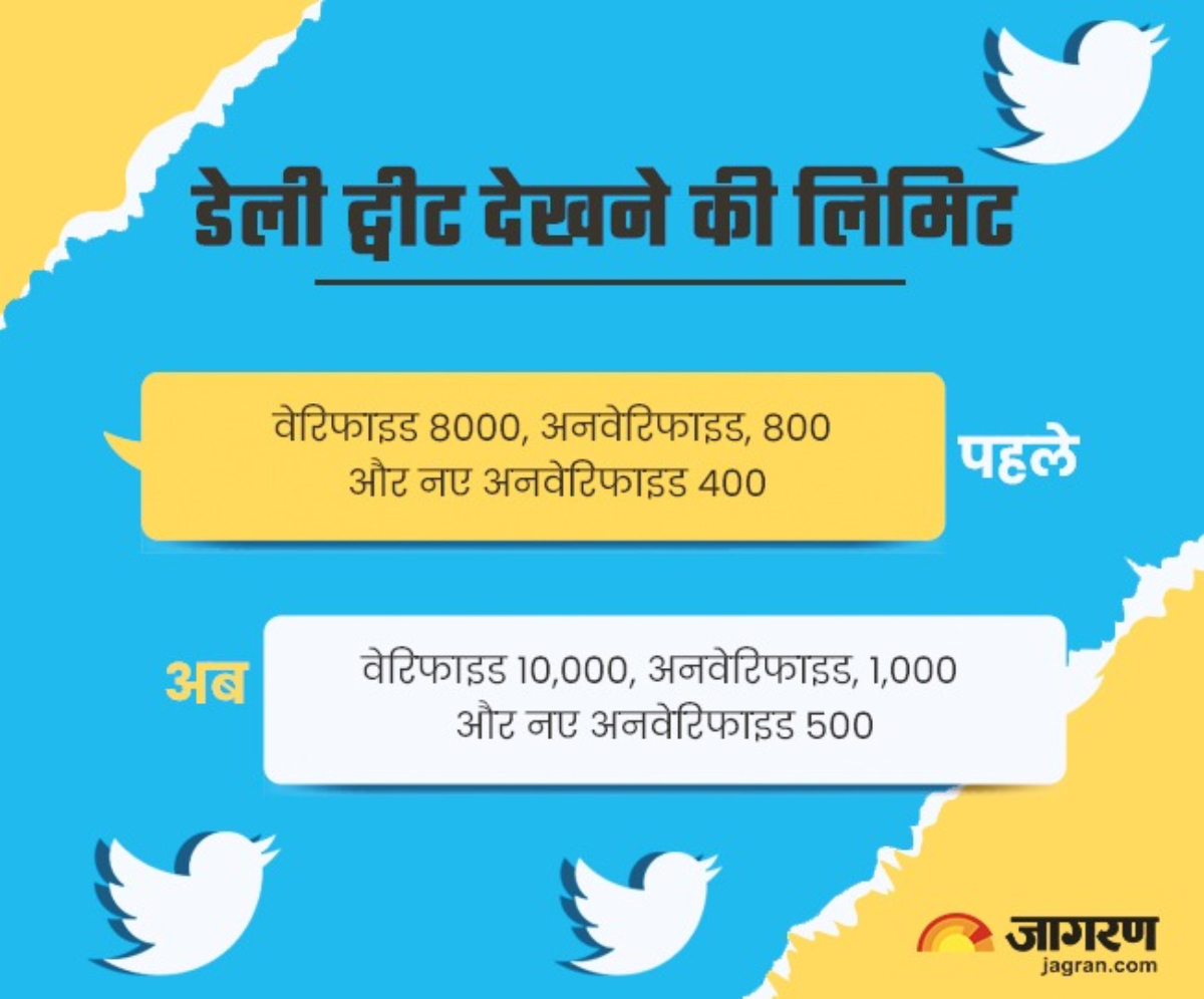 जब से एलन मस्क के हाथों में ट्विटर की कमान आई है वे लगातार नए-नए नियम लेकर आ रहे हैं। अब उन्होंने ट्विटर यूजर्स पर डेली ट्वीट देखने की लिमिट सेट कर दी है। वेरिफाइड यूजर्स रोजना 10000 ट्वीट पढ़ सकते हैं। इसके साथ ही अनवेरिफाइड अकाउंट के लिए यह सीमा 1000 और नए अनवेरिफाइड यूजर्स के लिए 500 है।